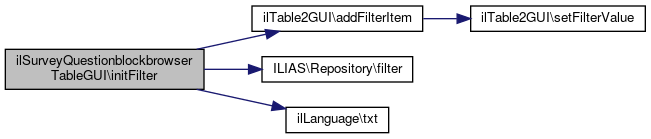 Here is the caller graph for this function:| ilSurveyQuestionblockbrowserTableGUI::initFilter | ( | ) |