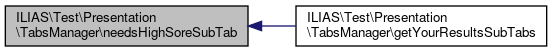 Here is the caller graph for this function:| ILIAS\Test\Presentation\TabsManager::needsHighSoreSubTab | ( | ) |