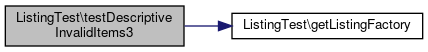 Here is the call graph for this function:| ListingTest::testDescriptiveInvalidItems3 | ( | ) |