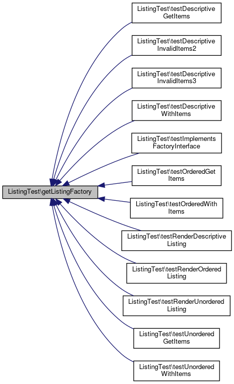 Here is the call graph for this function:| ListingTest::testImplementsFactoryInterface | ( | ) |