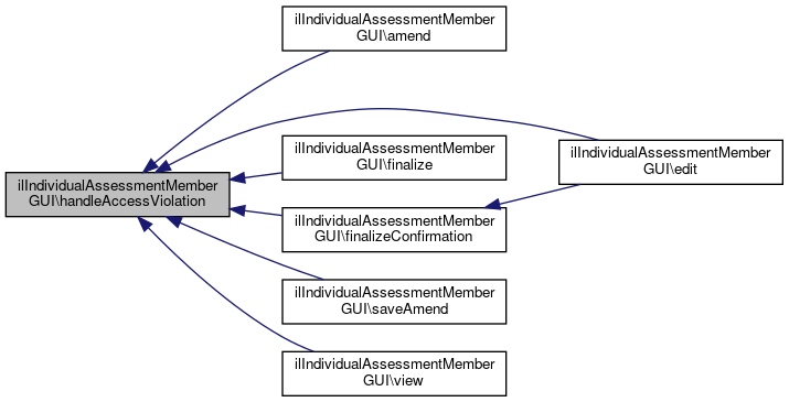 Here is the call graph for this function:| ilIndividualAssessmentMemberGUI::handleAccessViolation | ( | ) |