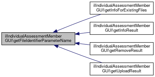 Here is the call graph for this function:| ilIndividualAssessmentMemberGUI::getFileIdentifierParameterName | ( | ) |