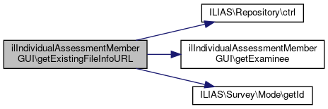 Here is the caller graph for this function:| ilIndividualAssessmentMemberGUI::getExistingFileInfoURL | ( | ) |