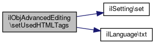 Here is the call graph for this function:| ilObjAdvancedEditing::setUsedHTMLTags | ( | array | $a_html_tags, |