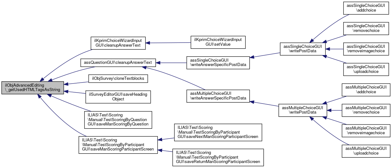 Referenced by ilKprimChoiceWizardInputGUI\cleanupAnswerText(), assQuestionGUI\cleanupAnswerText(), ilObjSurvey\cloneTextblocks(), ilSurveyEditorGUI\saveHeadingObject(), ILIAS\Test\Scoring\Manual\TestScoringByQuestionGUI\saveManScoringByQuestion(), and ILIAS\Test\Scoring\Manual\TestScoringByParticipantGUI\saveManScoringParticipantScreen().