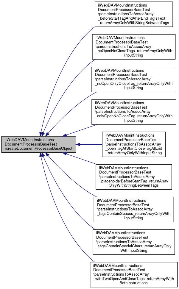 Here is the call graph for this function:| ilWebDAVMountInstructionsDocumentProcessorBaseTest::parseInstructionsToAssocArray_placeholderBeforeStartTag_returnArrayOnlyWithStringBetweenTags | ( | ) |
