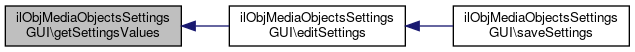 Here is the call graph for this function:| ilObjMediaObjectsSettingsGUI::getSettingsValues | ( | ) |