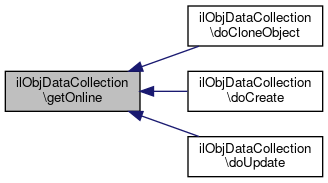 Here is the caller graph for this function:| ilObjDataCollection::getOnline | ( | ) |