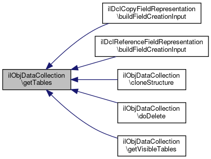 Here is the caller graph for this function:| ilObjDataCollection::getTables | ( | ) |