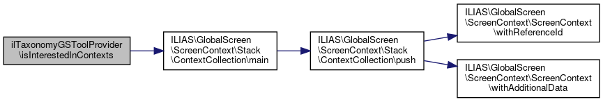 Here is the call graph for this function:| ilTaxonomyGSToolProvider::isInterestedInContexts | ( | ) |