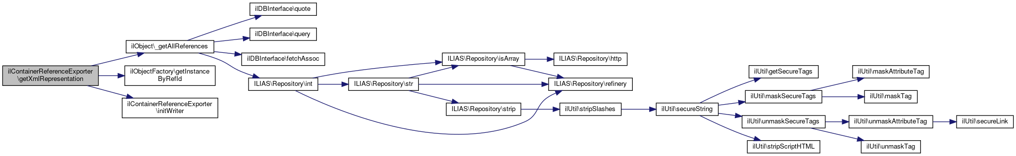 Here is the call graph for this function:| ilContainerReferenceExporter::getXmlRepresentation | ( | string | $a_entity, |