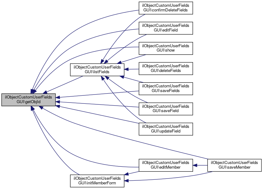 References ilMemberAgreement\_deleteByObjId(), ILIAS\Repository\form(), getObjId(), initFieldForm(), initFielIdFromQuery(), listFields(), and ILIAS\Repository\lng().