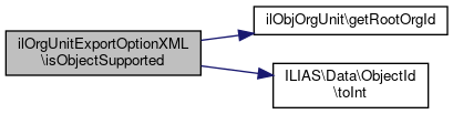 Here is the call graph for this function:| ilOrgUnitExportOptionXML::isObjectSupported | ( | ObjectId | $object_id | ) |