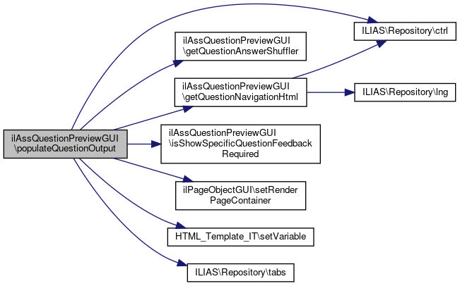 References ILIAS\Repository\ctrl(), getQuestionAnswerShuffler(), getQuestionNavigationHtml(), isShowSpecificQuestionFeedbackRequired(), ilPageObjectGUI\setRenderPageContainer(), HTML_Template_IT\setVariable(), and ILIAS\Repository\tabs().