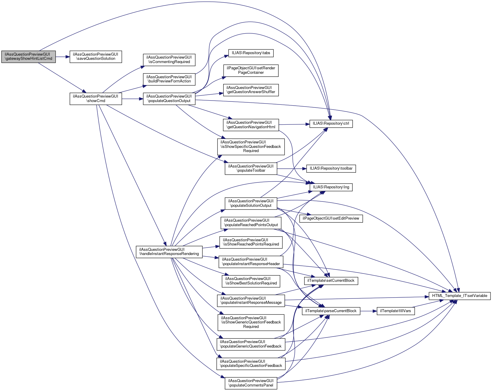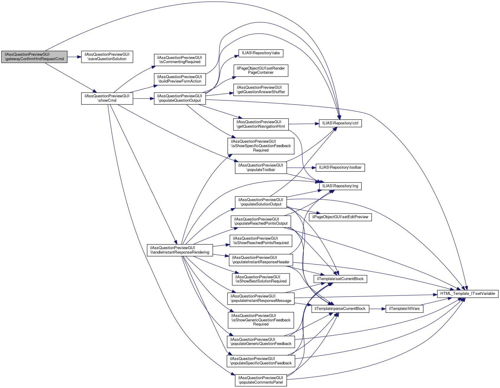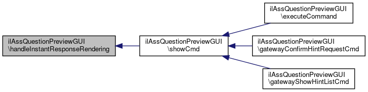 Here is the call graph for this function:| ilAssQuestionPreviewGUI::instantResponseCmd | ( | ) |