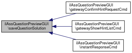 Here is the call graph for this function:| ilAssQuestionPreviewGUI::saveQuestionSolution | ( | ) |