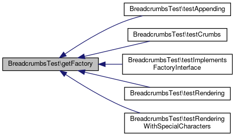 Here is the call graph for this function:| BreadcrumbsTest::testImplementsFactoryInterface | ( | ) |
