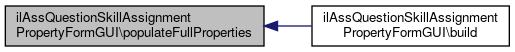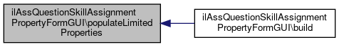 References ilPropertyFormGUI\addCommandButton(), ilPropertyFormGUI\addItem(), ilAssQuestionSkillAssignmentsGUI\CMD_SAVE_SKILL_QUEST_ASSIGN_PROPERTIES_FORM, ilAssQuestionSkillAssignmentsGUI\CMD_SHOW_SKILL_QUEST_ASSIGNS, ILIAS\Repository\ctrl(), isManipulationEnabled(), ILIAS\Repository\lng(), populateFullProperties(), populateLimitedProperties(), questionSupportsSolutionCompare(), ilFormGUI\setFormAction(), and ilPropertyFormGUI\setTitle().
