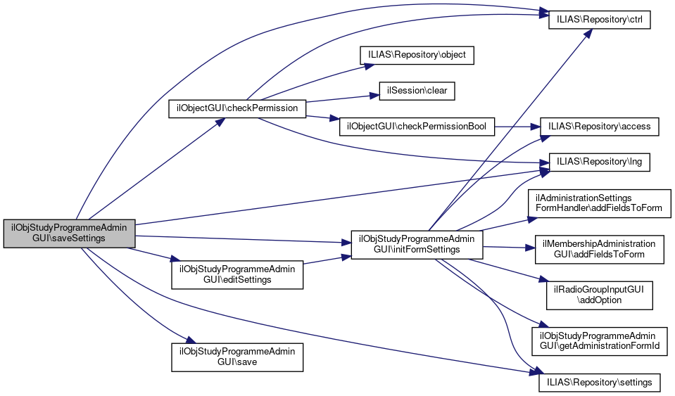 References ilObjectGUI\checkPermission(), ILIAS\Repository\ctrl(), editSettings(), initFormSettings(), ILIAS\Repository\lng(), save(), ilObjStudyProgrammeAdmin\SETTING_VISIBLE_ON_PD, and ILIAS\Repository\settings().