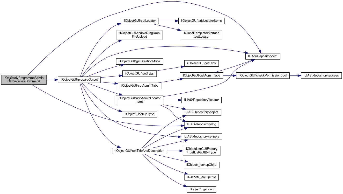 Here is the caller graph for this function:| ilObjStudyProgrammeAdminGUI::executeCommand | ( | ) |