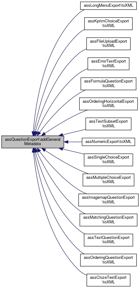 Referenced by addAdditionalContentEditingModeInformation(), addGeneralMetadata(), assSingleChoiceExport\toXML(), assMultipleChoiceExport\toXML(), and assTextQuestionExport\toXML().