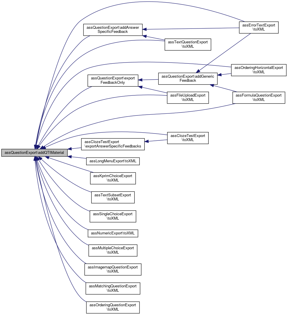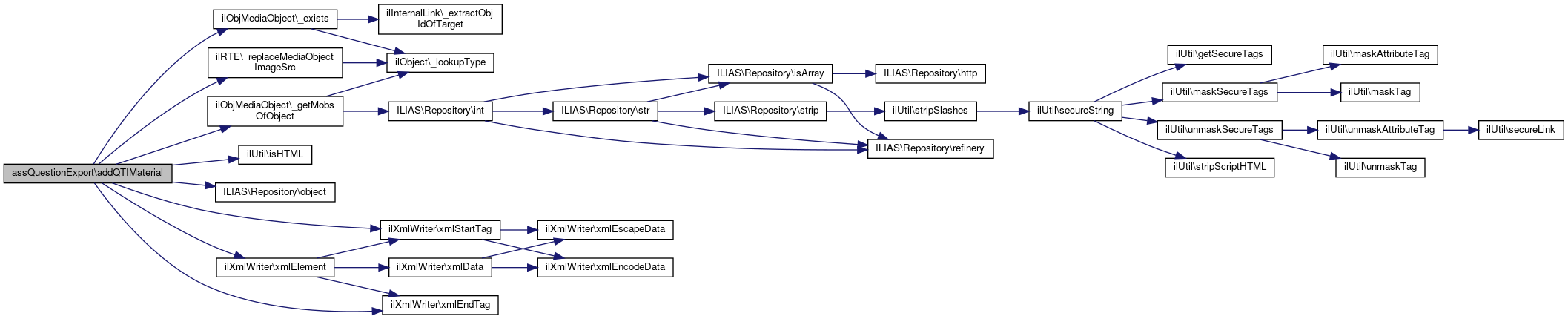 Here is the caller graph for this function:| assQuestionExport::addQTIMaterial | ( | ilXmlWriter | $a_xml_writer, |