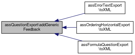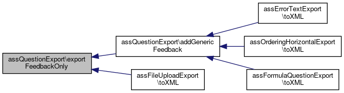 Here is the caller graph for this function:| assQuestionExport::exportFeedbackOnly | ( | $a_xml_writer | ) |