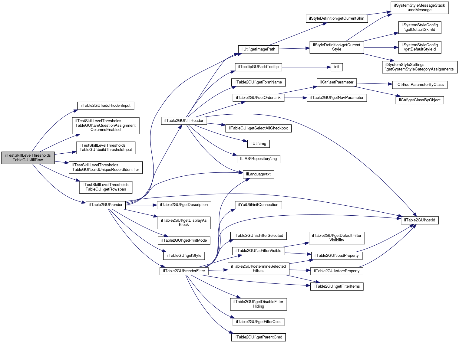 Here is the call graph for this function:| ilTestSkillLevelThresholdsTableGUI::fillRow | ( | array | $a_set | ) |