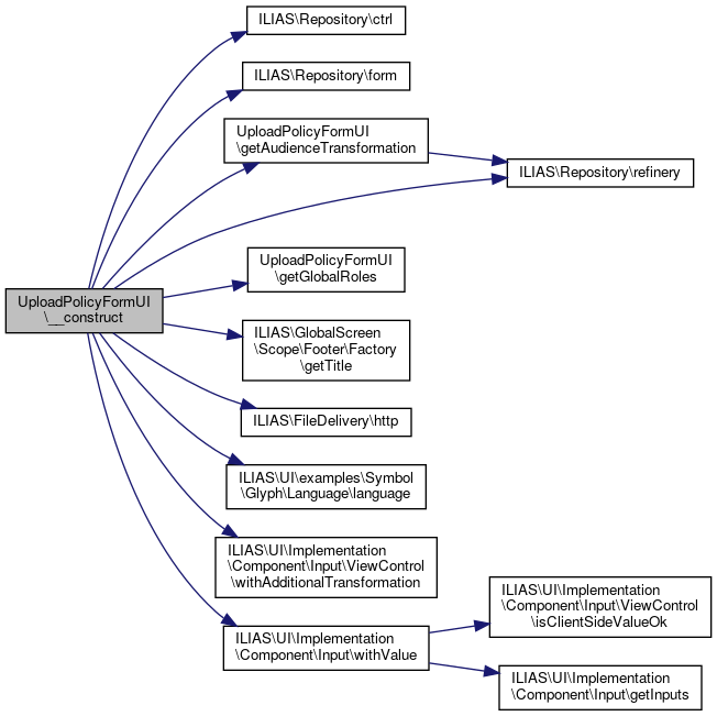| __construct (protected UploadPolicyDBRepository $upload_policy_db_repository, protected ilCtrlInterface $ctrl, protected HttpServices $http, protected ilLanguage $language, protected ilRbacReview $rbac_review, protected RefineryFactory $refinery, protected UIFactory $ui_factory) | |