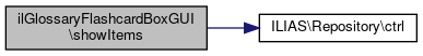 Here is the call graph for this function:| ilGlossaryFlashcardBoxGUI::showAllItems | ( | ) |