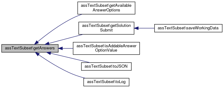 Here is the call graph for this function:| array assTextSubset::$answers = [] |