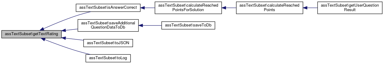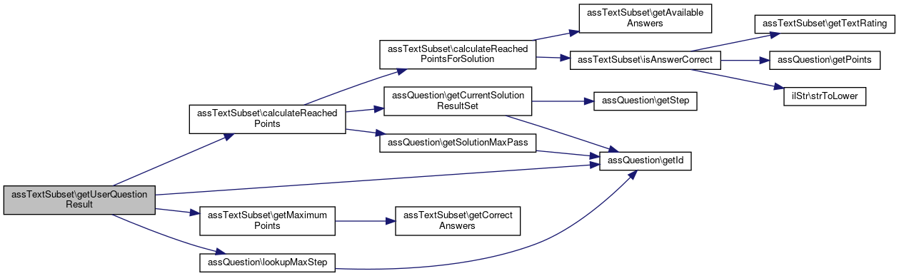 Here is the caller graph for this function:| assTextSubset::getUserQuestionResult | ( | int | $active_id, |