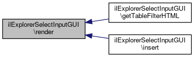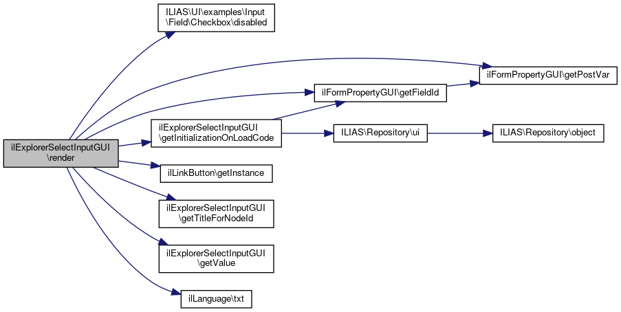 Here is the call graph for this function:| ilExplorerSelectInputGUI::render | ( | string | $a_mode = "property_form" | ) |