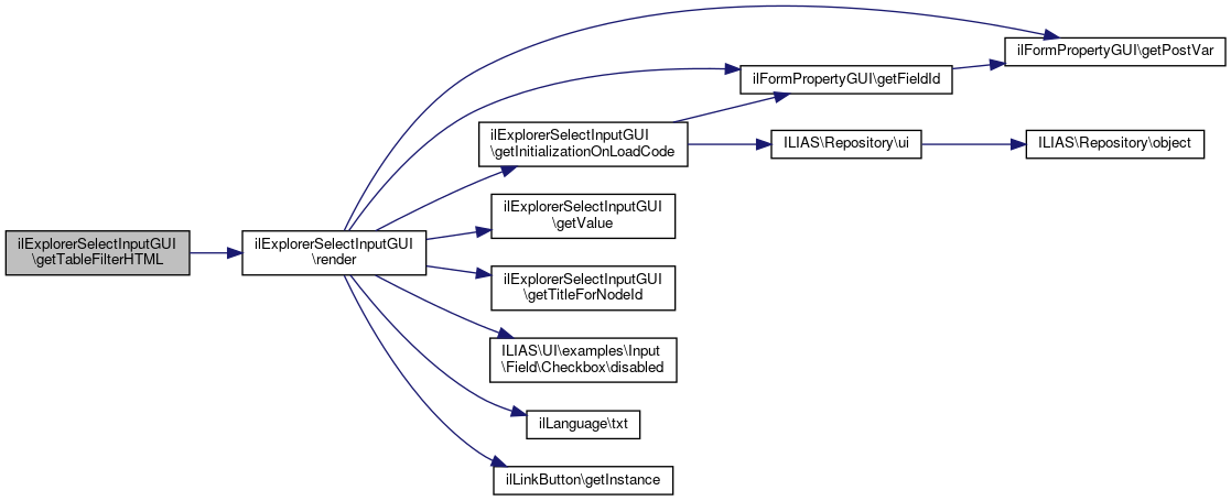 Here is the caller graph for this function:| ilExplorerSelectInputGUI::getTableFilterHTML | ( | ) |
