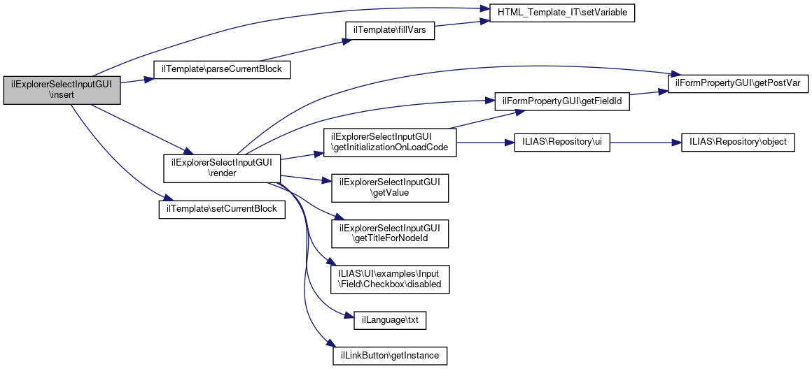 Here is the call graph for this function:| ilExplorerSelectInputGUI::insert | ( | ilTemplate | $a_tpl | ) |
