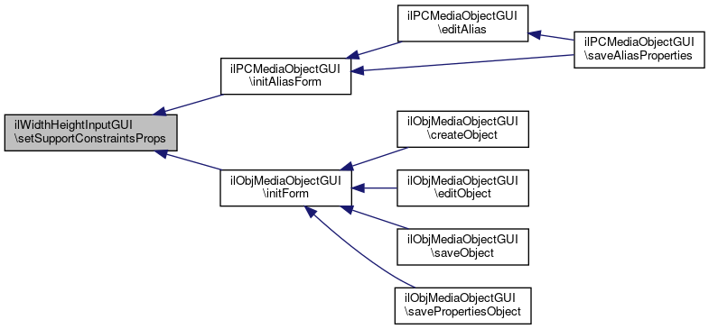 Here is the caller graph for this function:| ilWidthHeightInputGUI::setSupportConstraintsProps | ( | bool | $a_val | ) |