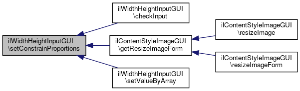 Here is the call graph for this function:| ilWidthHeightInputGUI::setConstrainProportions | ( | bool | $a_constrainproportions | ) |
