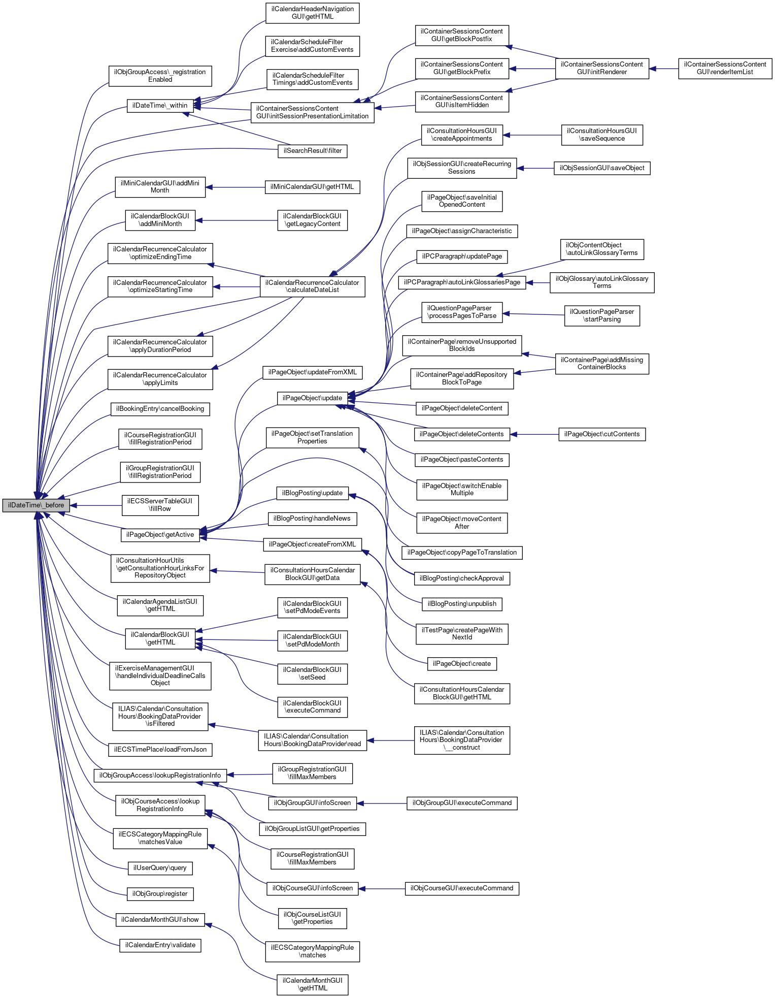 Referenced by ilObjGroupAccess\_registrationEnabled(), _within(), ilMiniCalendarGUI\addMiniMonth(), ilCalendarBlockGUI\addMiniMonth(), ilCalendarRecurrenceCalculator\applyDurationPeriod(), ilCalendarRecurrenceCalculator\applyLimits(), ilCalendarRecurrenceCalculator\calculateDateList(), ilBookingEntry\cancelBooking(), ilCourseRegistrationGUI\fillRegistrationPeriod(), ilGroupRegistrationGUI\fillRegistrationPeriod(), ilECSServerTableGUI\fillRow(), ilSearchResult\filter(), ilPageObject\getActive(), ilConsultationHourUtils\getConsultationHourLinksForRepositoryObject(), ilCalendarAgendaListGUI\getHTML(), ilCalendarBlockGUI\getHTML(), ilExerciseManagementGUI\handleIndividualDeadlineCallsObject(), ilContainerSessionsContentGUI\initSessionPresentationLimitation(), ILIAS\Calendar\ConsultationHours\BookingDataProvider\isFiltered(), ilECSTimePlace\loadFromJson(), ilObjGroupAccess\lookupRegistrationInfo(), ilObjCourseAccess\lookupRegistrationInfo(), ilECSCategoryMappingRule\matchesValue(), ilCalendarRecurrenceCalculator\optimizeEndingTime(), ilCalendarRecurrenceCalculator\optimizeStartingTime(), ilUserQuery\query(), ilObjGroup\register(), ilCalendarMonthGUI\show(), and ilCalendarEntry\validate().