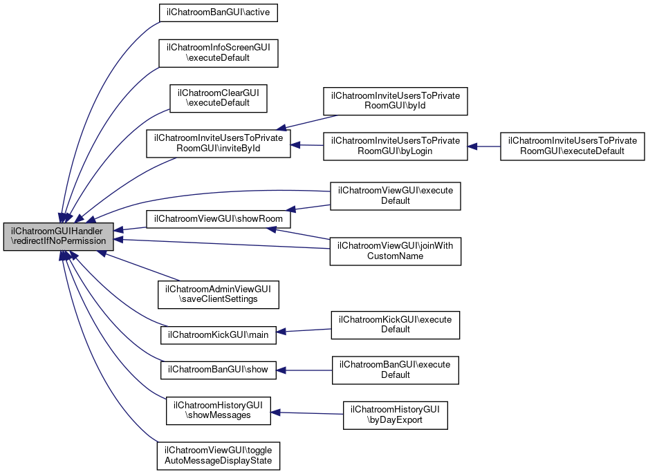 Here is the caller graph for this function:| ilChatroomGUIHandler::redirectIfNoPermission | ( | $permission | ) |