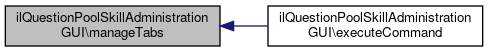 Here is the caller graph for this function:| ilQuestionPoolSkillAdministrationGUI::manageTabs | ( | $activeSubTabId | ) |