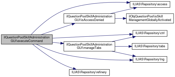Here is the call graph for this function:| ilQuestionPoolSkillAdministrationGUI::executeCommand | ( | ) |