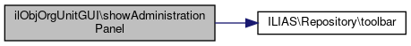 Here is the call graph for this function:| ilObjOrgUnitGUI::showAdministrationPanel | ( | ) |