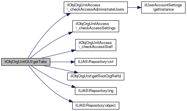 Here is the call graph for this function:| ilObjOrgUnitGUI::getAdminTabs | ( | ) |