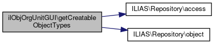 Here is the call graph for this function:| ilObjOrgUnitGUI::getCreatableObjectTypes | ( | ) |