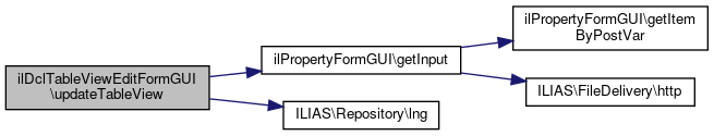 Here is the caller graph for this function:| ilDclTableViewEditFormGUI::updateTableView | ( | ) |