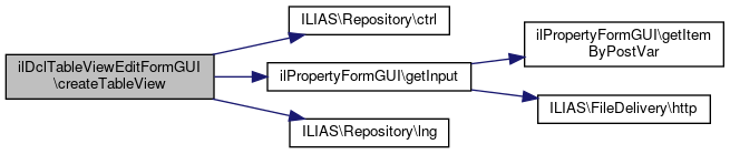 Here is the call graph for this function:| ilDclTableViewEditFormGUI::createTableView | ( | ) |