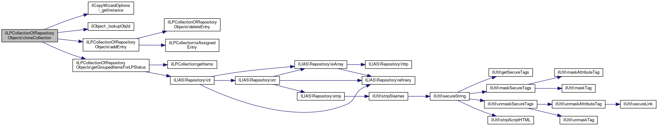 Here is the caller graph for this function:| ilLPCollectionOfRepositoryObjects::cloneCollection | ( | int | $a_target_id, |