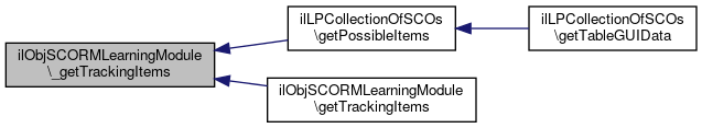 Here is the caller graph for this function:| ilObjSCORMLearningModule::getTrackedItems | ( | ) |