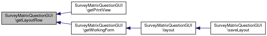 Here is the call graph for this function:| SurveyMatrixQuestionGUI::getLayoutRow | ( | ) |