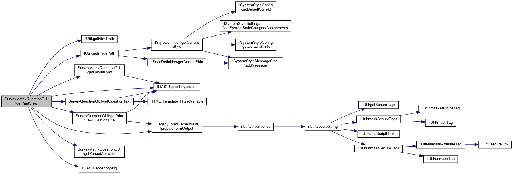 Here is the caller graph for this function:| SurveyMatrixQuestionGUI::getPrintView | ( | int | $question_title = 1, |